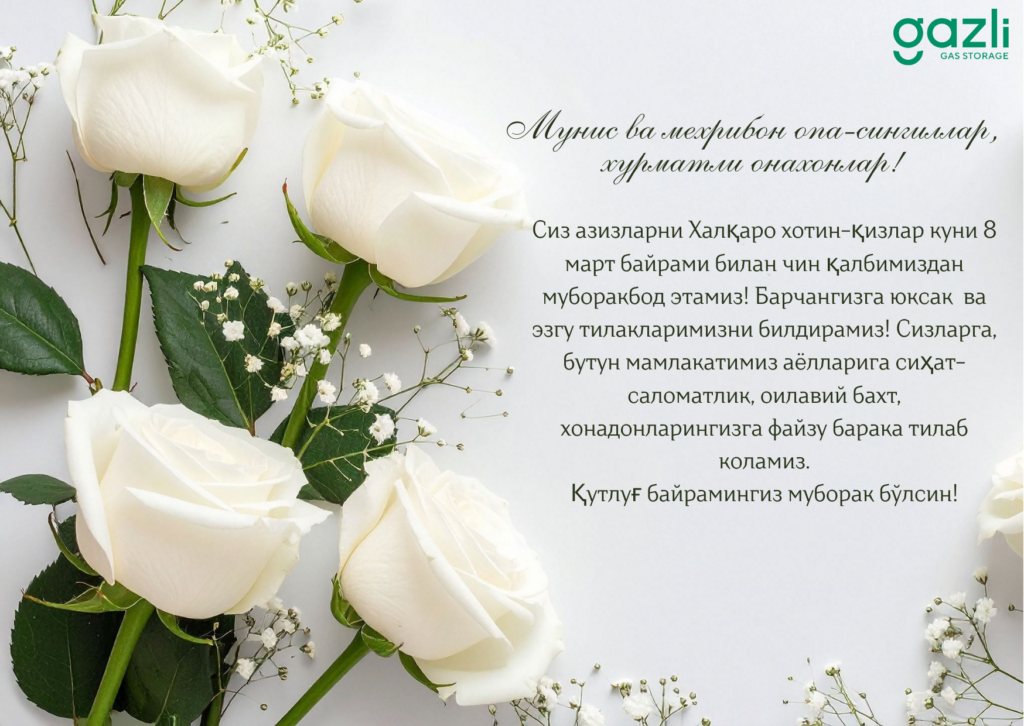 O‘zbekiston Respublikasi Ekologiya, atrof-muhitni muhofaza qilish va iqlim o‘zgarishi vazirligi huzuridagi Buxoro viloyati tabiiy resurslar boshqarmasi “5-iyun – Butunjahon atrof-muhitni muhofaza qilish kuni” bayrami munosabati bilan “Gazli Gas Storage” MChJ QKga atrof-muhitni muhofaza qilishdagi faol ishtiroki uchun o‘z minnatdorchiligini bildirdi.