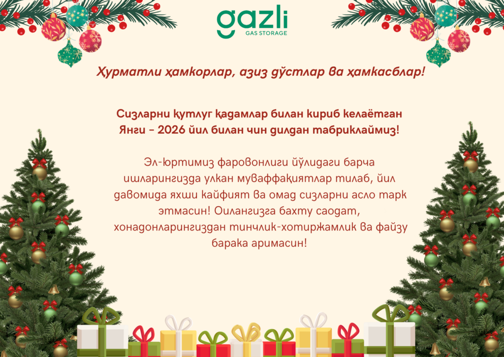“Gazli Gas Storage” МЧЖ Ўзбекистондаги газ омборининг оператори ҳисобланади. Уни кенгайтириш дастури мамлакатнинг энергия хавфсизлигини сезиларли даражада оширади. Бизнинг фаолиятимиз газни сақлаш ҳажмини 3 миллиарддан 10 миллиард метр кубгача, яъни уч баравар оширишга қаратилган.